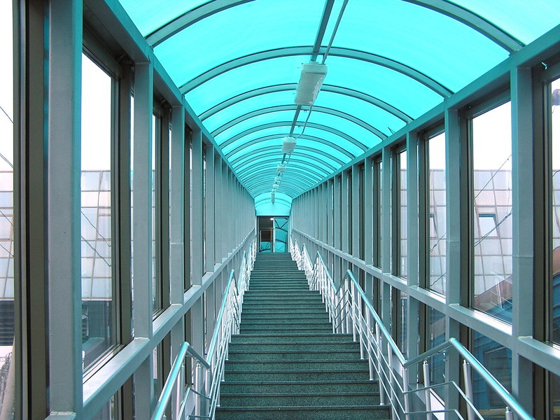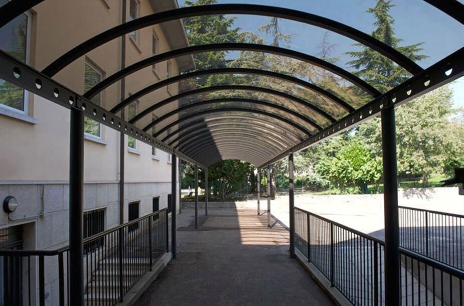 Монолитный поликарбонат применяется в промышленном и гражданском строительстве: архитектурное остекление общественных зданий, школ, офисов, летних кафе, ресторанов, промышленных и административных зданий, защитное безопасное остекление в школах, спортивных сооружениях; козырьки и навесы перед зданиями; прозрачные пешеходные переходы, остановки, платформы автовокзалов.