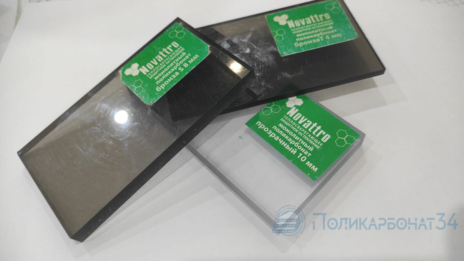 В наличии прозрачный монолитный поликарбонат и цвет "бронза" (темная и светлая).