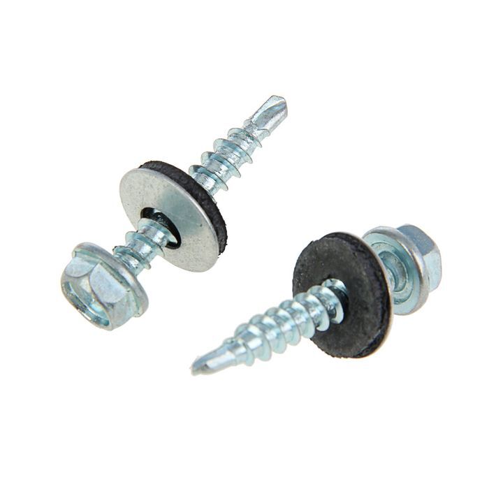 Крепление поликарбоната: кровельные саморезы с резиновыми шайбами.